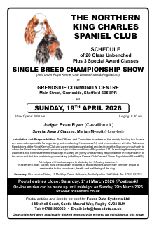 Northern-King-Charles-Spaniel-Club-Open-Show-April-2026.aspx Northern King Charles Spaniel Club (Championship Show) on Sunday, 19 April 2026